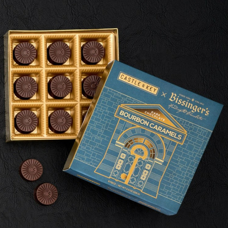 Bissinger's Limited Edition bourbon caramels have been crafted with Castle & Key's Small Batch Kentucky Straight Bourbon Whiskey and Bissinger's dark chocolate.