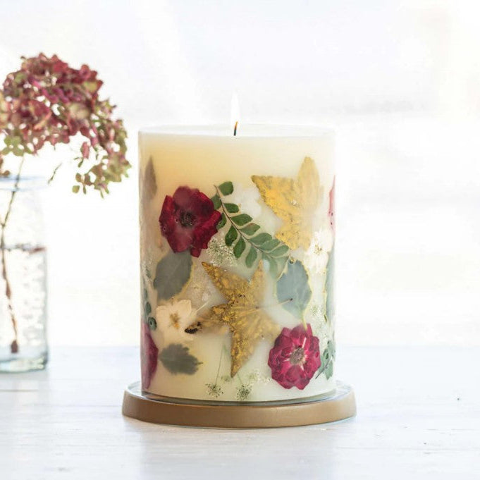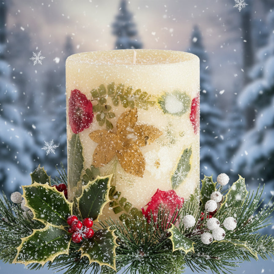 Botanicals In the Candle (Small / Medium): Crafted over three days by our artisan team in Colorado, each candle is hand-poured using our exclusive wax blend and finished with care. The warm glow and winter-inspired fragrance make this candle a stunning seasonal accent or thoughtful holiday gift.