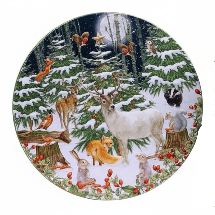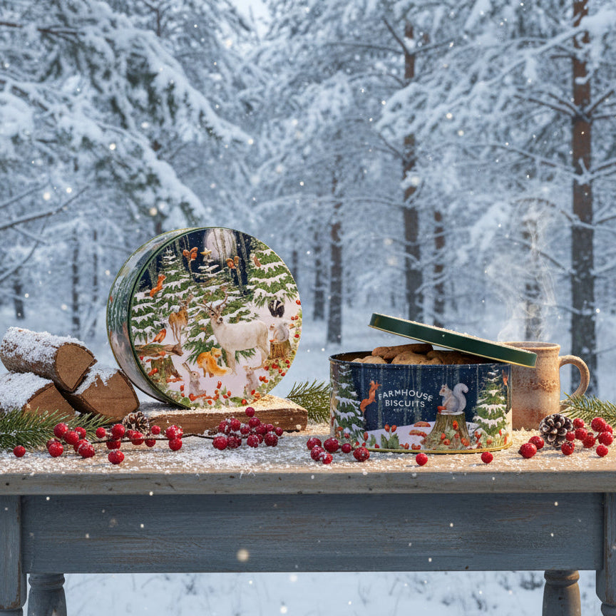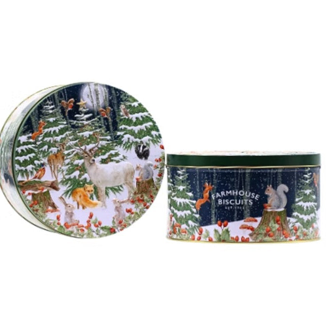 Farmhouse Biscuits, Christmas Woodland Animal Large British Round Holiday Tin, Imported, 17.5 oz