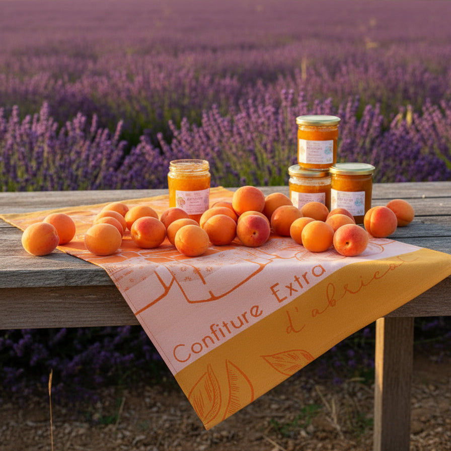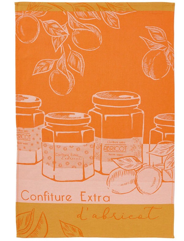 Enhance your kitchen with this cotton tea towel showcasing a lively orange background and a charming apricot jam pattern. Perfect for drying dishes, it adds a cozy, fruity ambiance to your space while honoring the delightful flavor of orchard apricots.