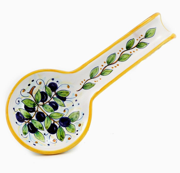 Authentic Deruta Italy Hand Painted Ceramic Spoon Rest, "Olives" in Gift Box, 11"