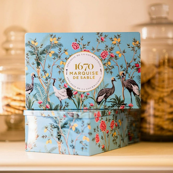 This collectible tin box represents the famous Petit Sablé's city: Sablé-sur-Sarthe and makes a lovely gift for anyone, while remains most useful after the cookies are consumed.
