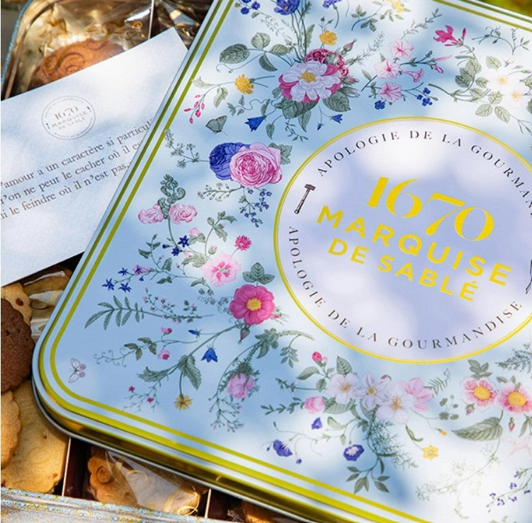 Shortbread cookies arrive in a lovely French reusable decorative metal tin.