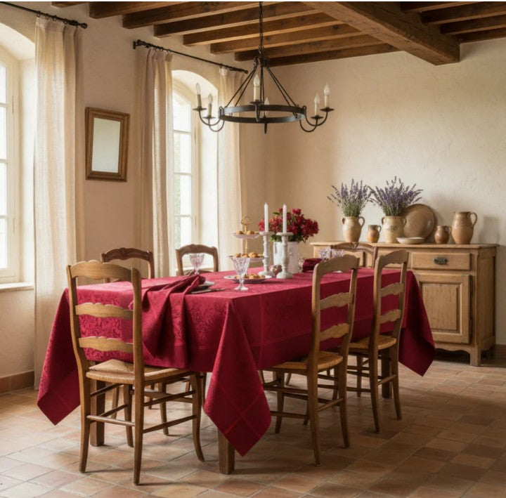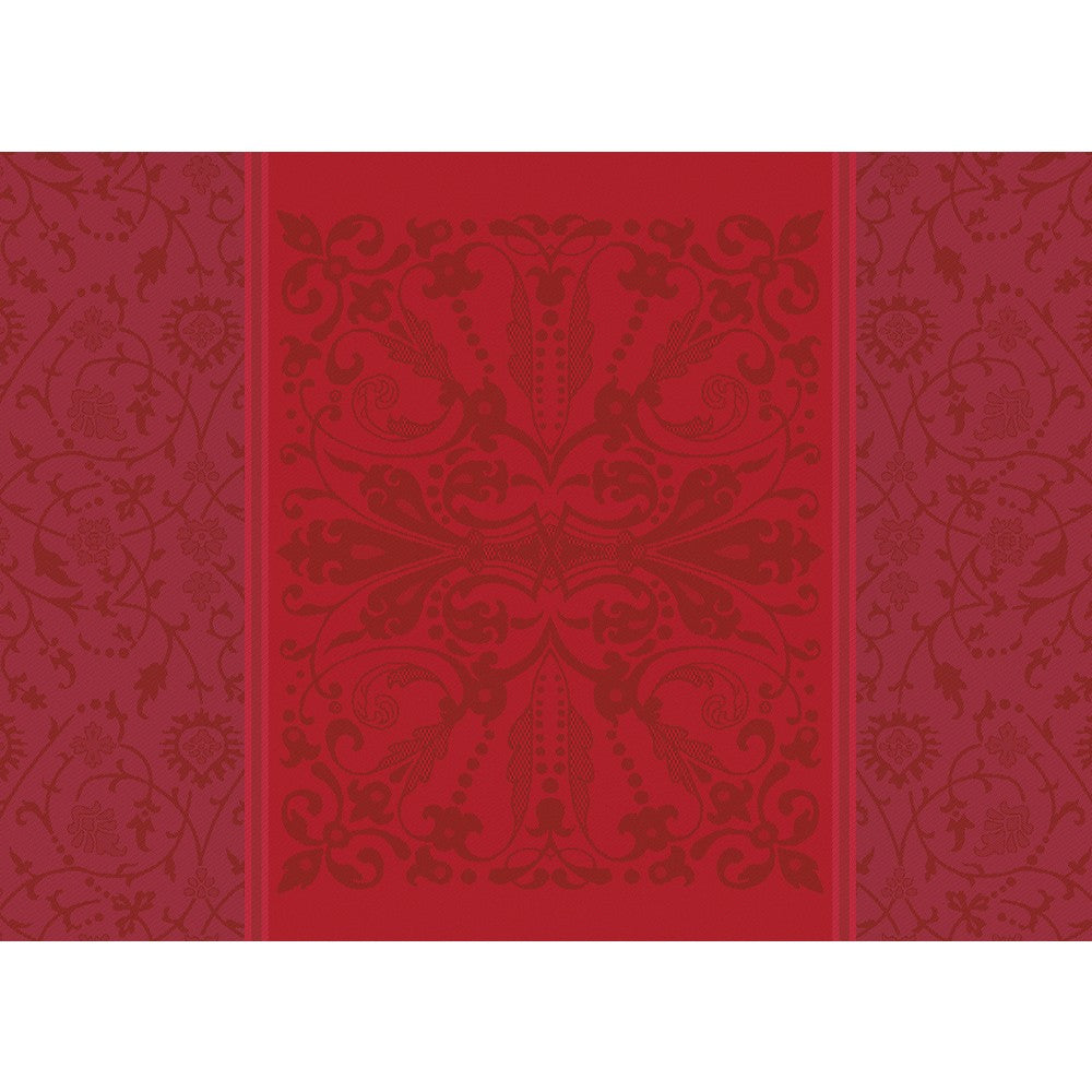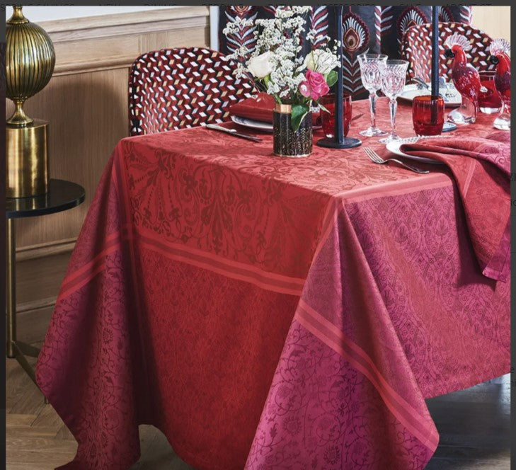 Cassandre Grenat is sure to elicit a sensation when placed on your table. This gorgeous pattern was modeled by Garnier-Thiebaut after the fabrics worn by women during the renaissance. Worthy of the finest estates in France, this cloth will give a noble appearance to any gathering.