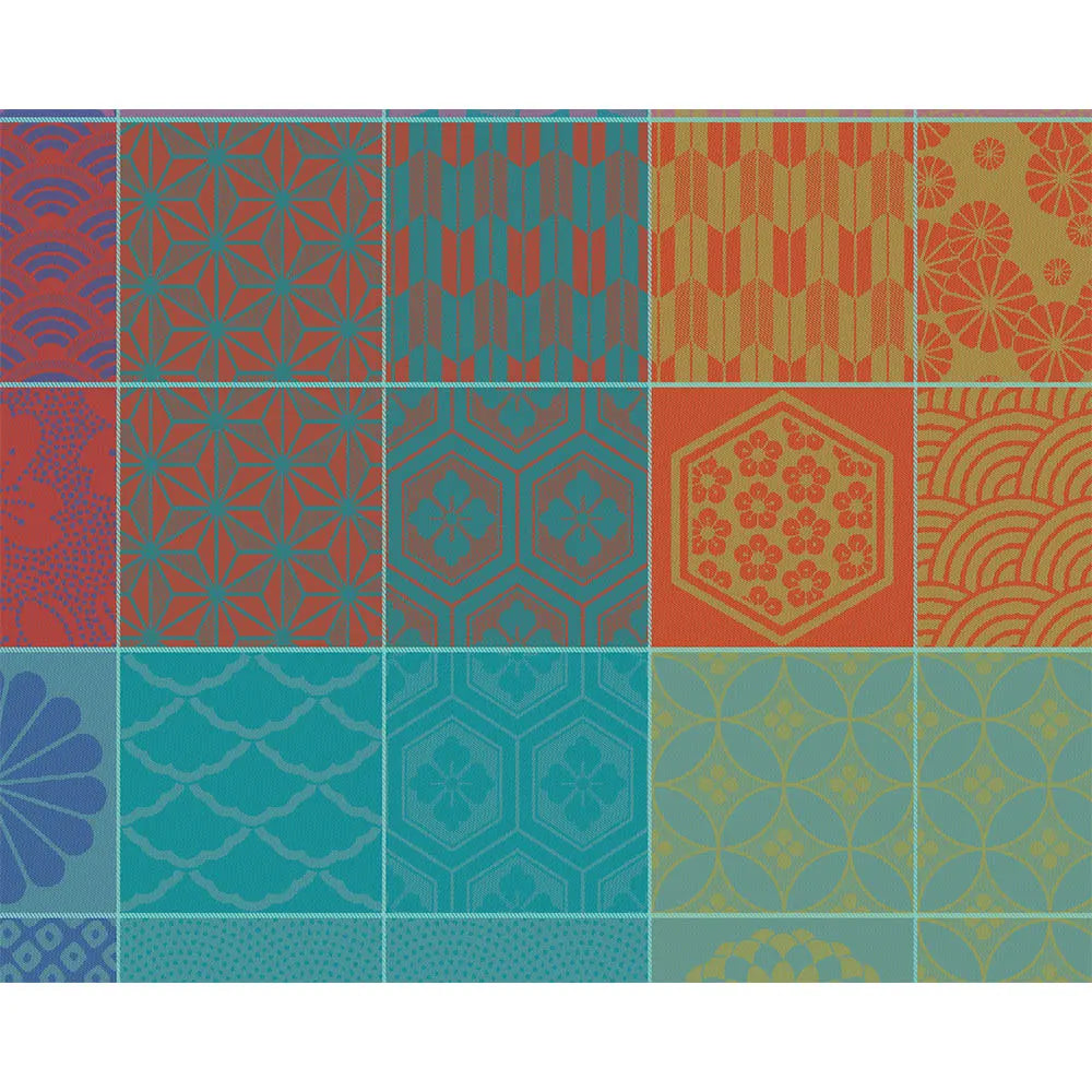 These placemats feature a multicolored floral tile pattern in shades of orange, red, blue, and purple is carefully layered to create depth and fluidity. A refined accent for any table, it brings a vibrant touch of French artistry to everyday and special occasions alike.