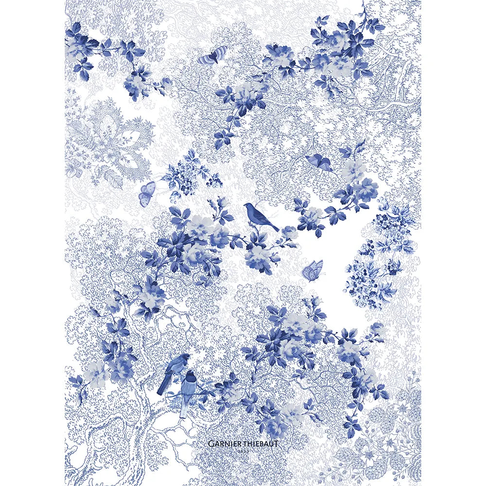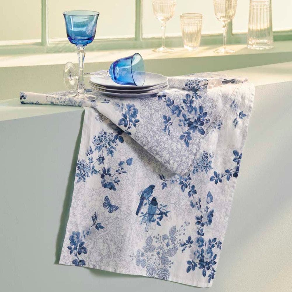 Garnier-Thiebaut, Volière, Bleu Table Runner, Cotton/Linen Blend