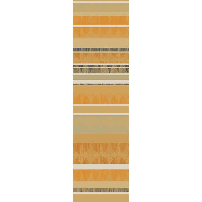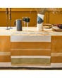 The Mille Edo Cuir Table Runner is woven in France from 100% extra-long staple cotton, featuring a refined jacquard weave with a soft, elegant finish. Its abstract stripe design in warm shades of brown, orange, white, and cream is skillfully layered to create depth and visual harmony. Subtle and contemporary, it brings a touch of understated luxury to modern table settings.