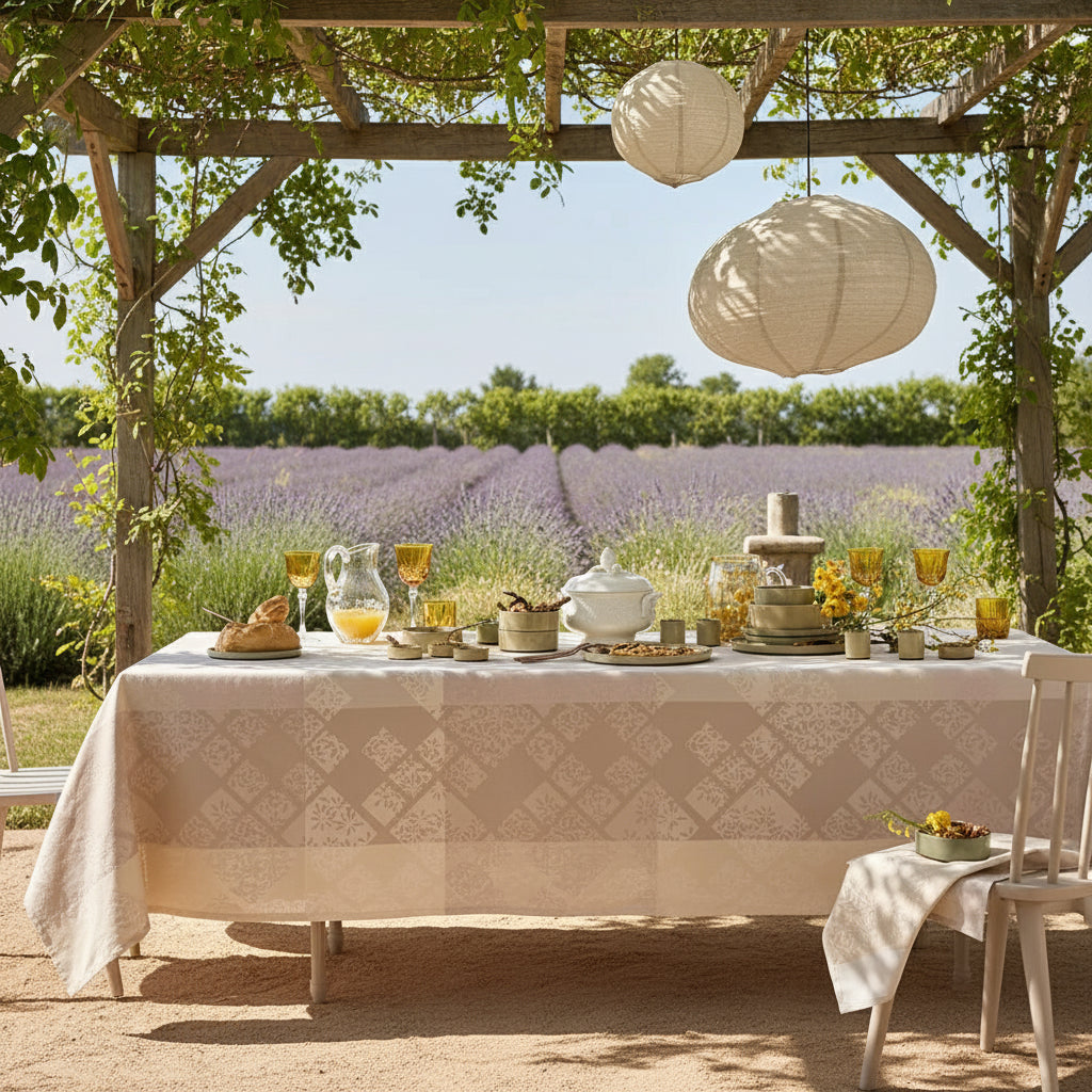 Garnier-Thiebaut, Mille Pistils Naturel French Jacquard Tablecloth