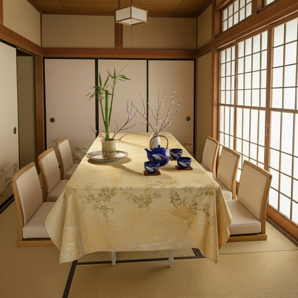 Designed by Garnier-Thiebaut in-house French artisans, this pattern features a printed pattern of golden bamboo and leaves inspired by Japanese landscapes, bringing a sense of warmth and tranquility to the table. Elegant and versatile, it's a refined accent for both everyday and special occasions.