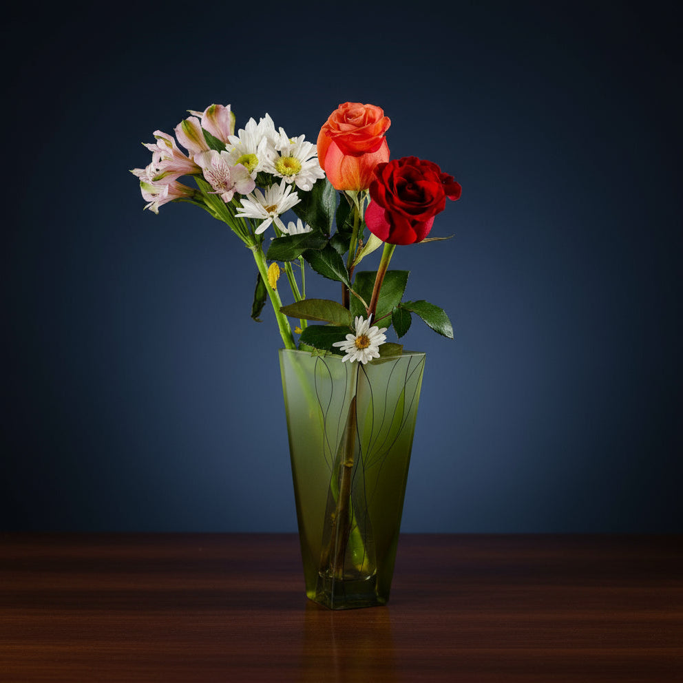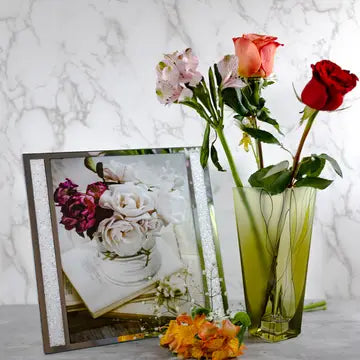 Badash Crystal, Evergreen 8" Squarish Decorated Glass Vase