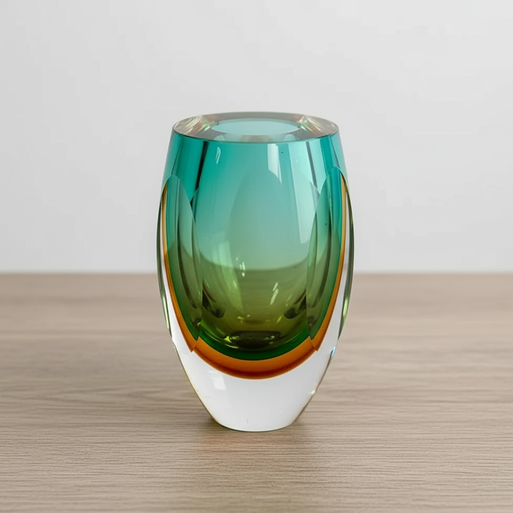 Badash Crystal, Rimini Murano Style Art Glass Amber and Green 6" Vase