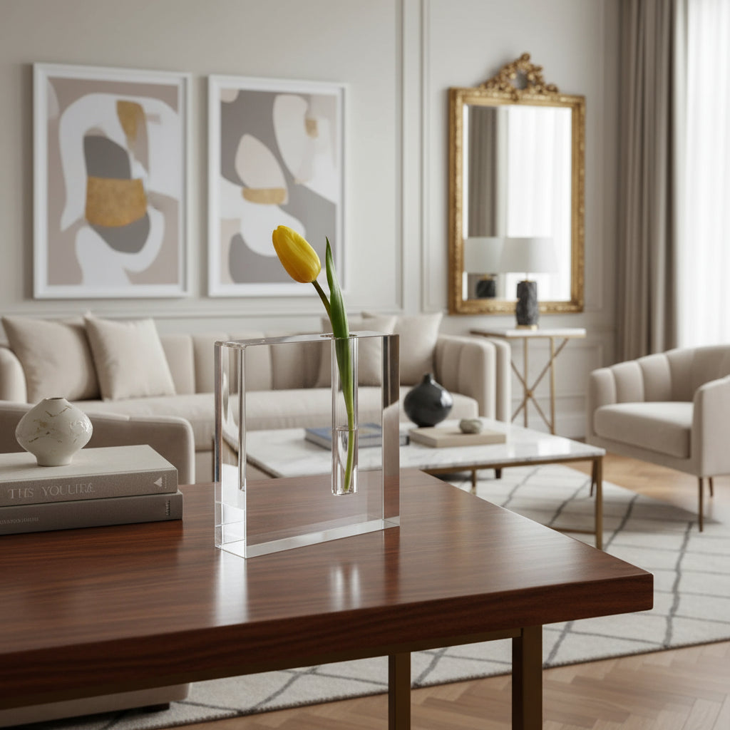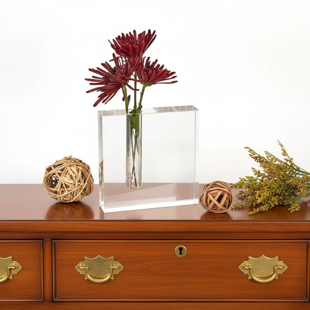 This 6 x 6 inch clear block bud vase can handle any gift or holiday celebration. Very elegant clean lines make it a lovely gift for the millennial in your life. Also, a perfect design for personalization.