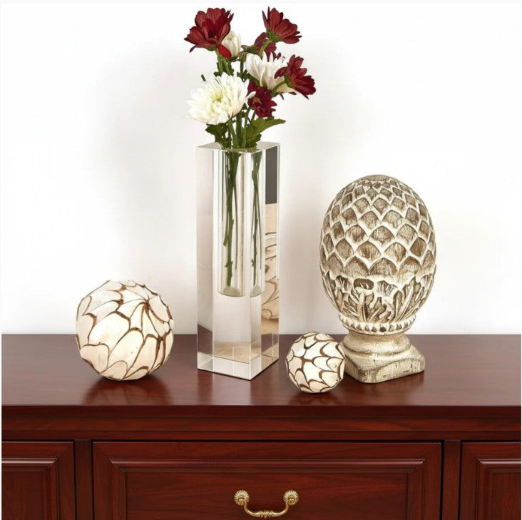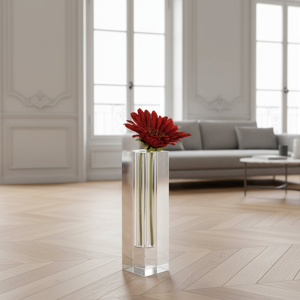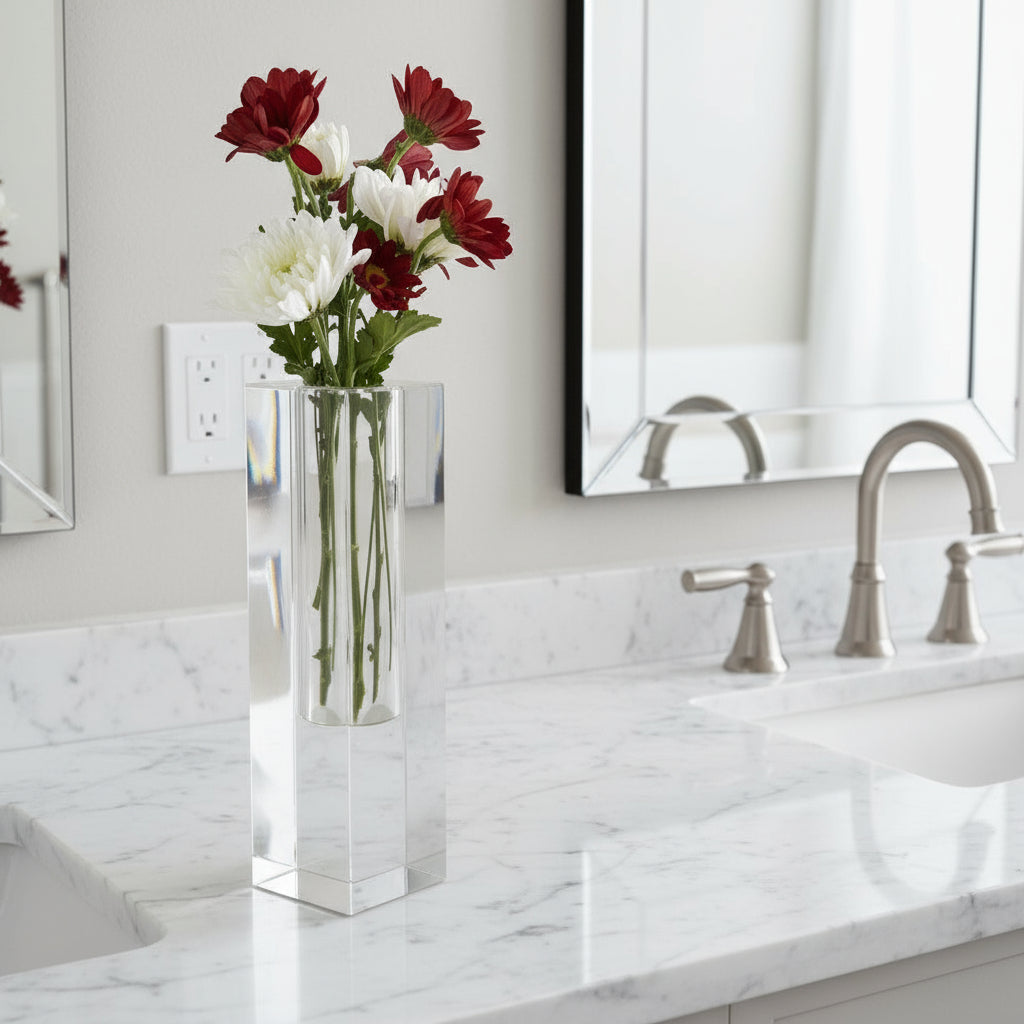 Standing 7.25 inches tall with a 2-inch square profile, the handcrafted "Donovan" bud vase is designed to showcase one or several stems. Its sleek, refined design blends modern simplicity with timeless elegance, making it a versatile accent for both contemporary and classic settings.