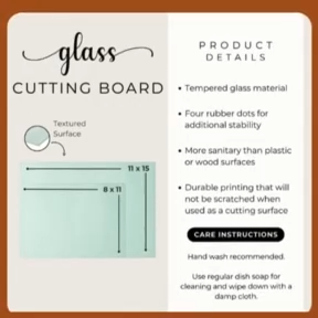 Each cutting board is crafted from tempered glass and features permanent ink. The images are transferred to the boards using high heat to create a stunning finished piece. Each piece is made one at a time in a studio in Northern Virginia.