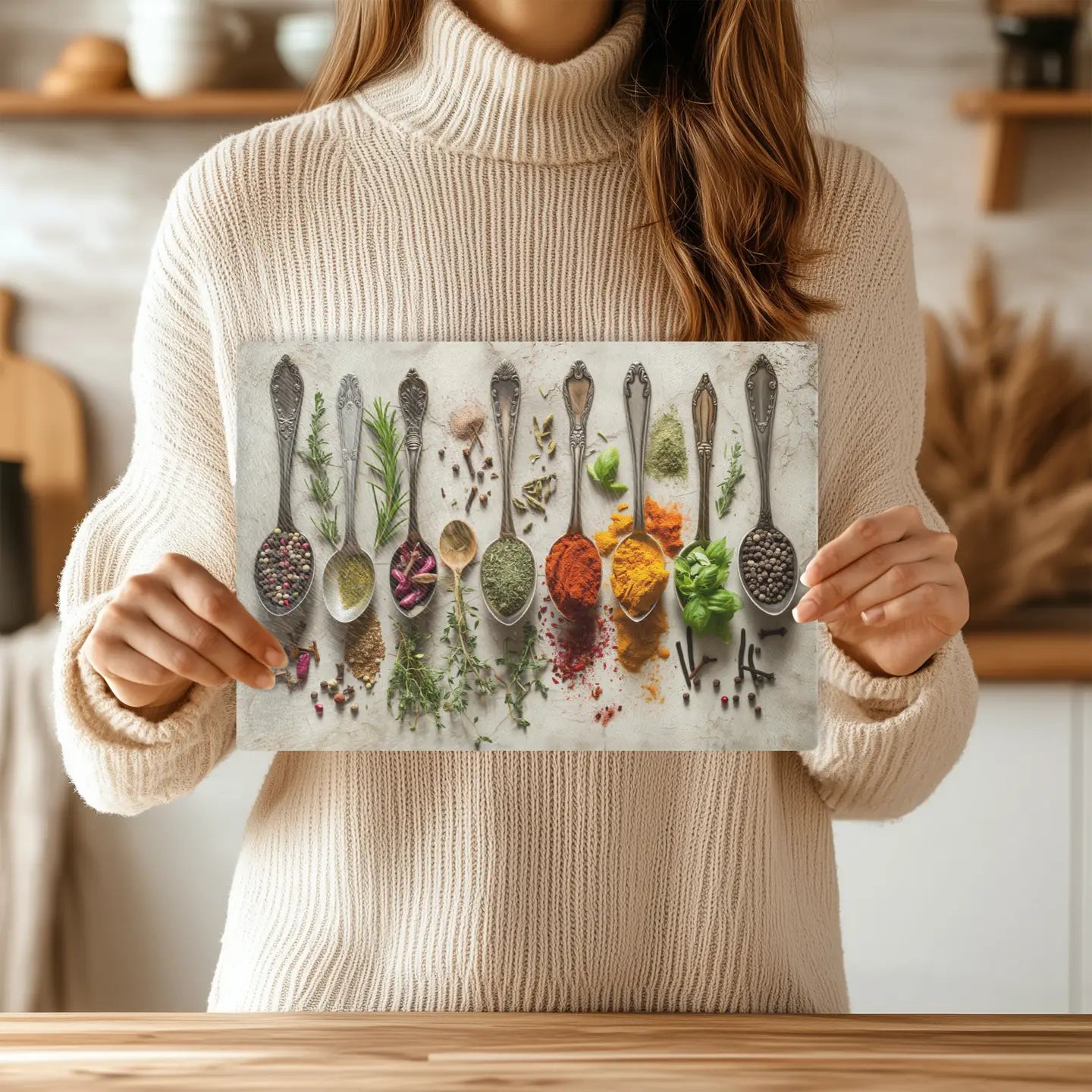 Discover the perfect blend of functionality and artistry with our Tempered Glass Kitchen Cutting Board. Featuring a vibrant herbs and spices design, this versatile charcuterie board doubles as a stylish serving tray. Makes an ideal gift for foodies or as a stunning challah board. Transform your kitchen today!
