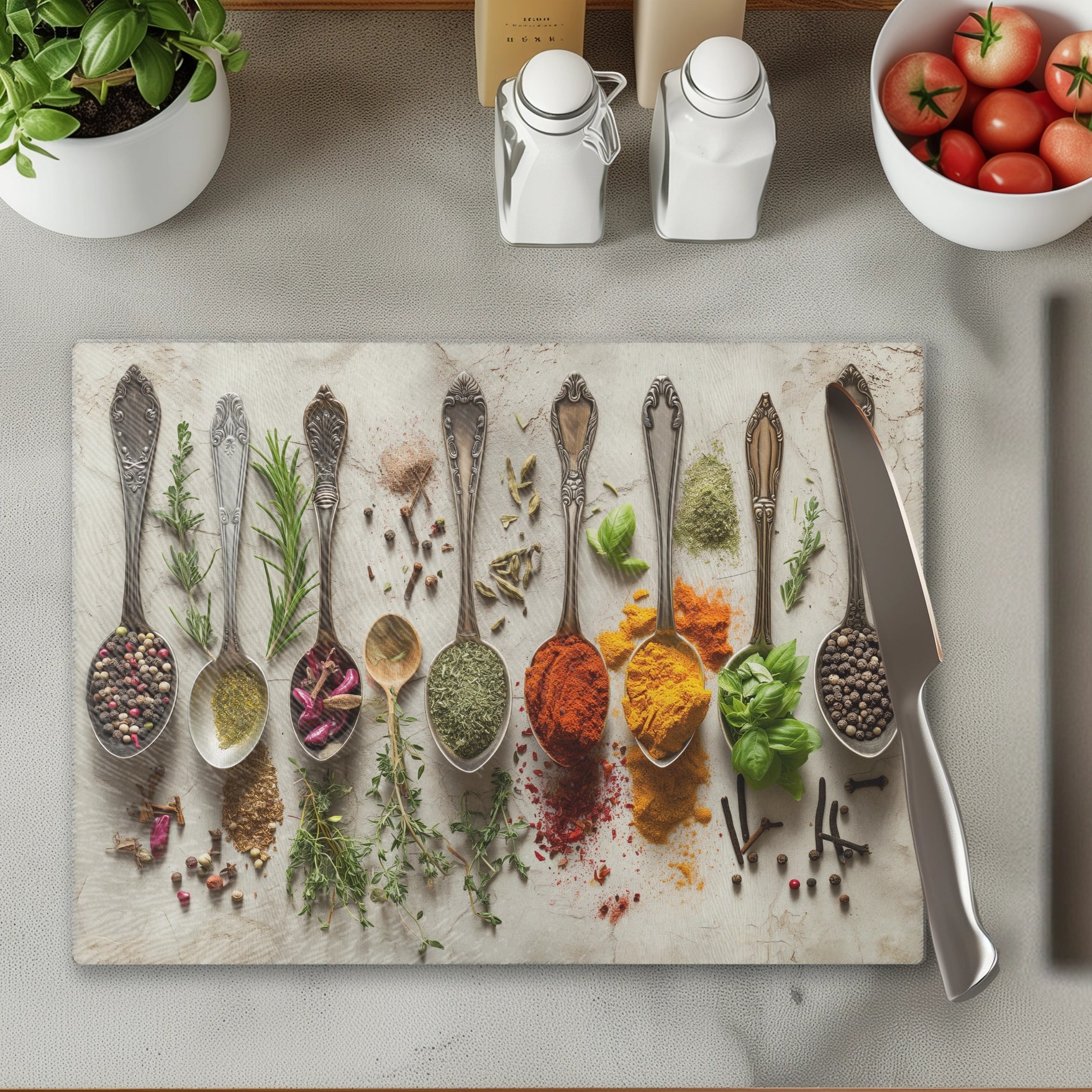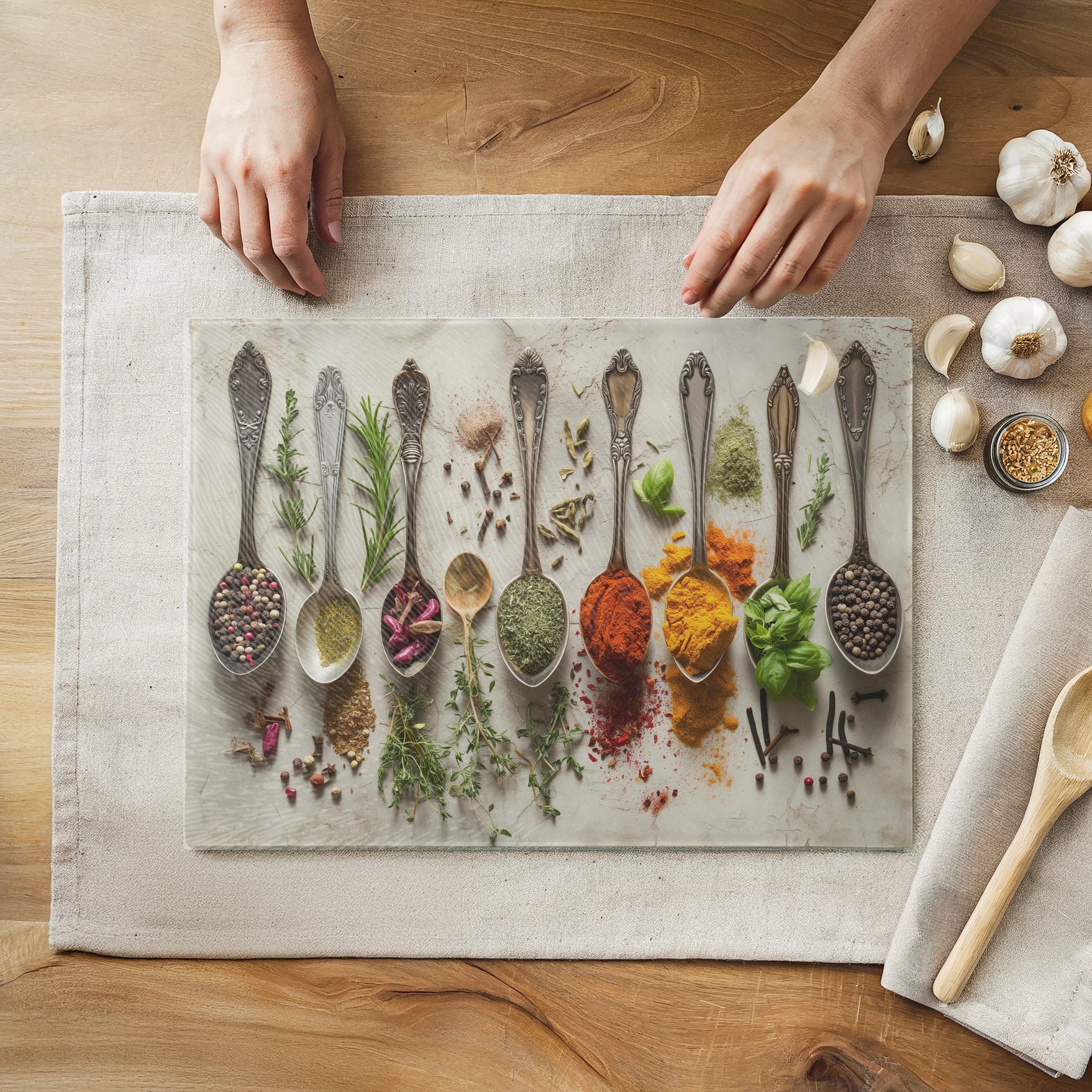 Fernville Creations, Herbs and Spices Tempered Glass Large Cutting / Charcuterie Board