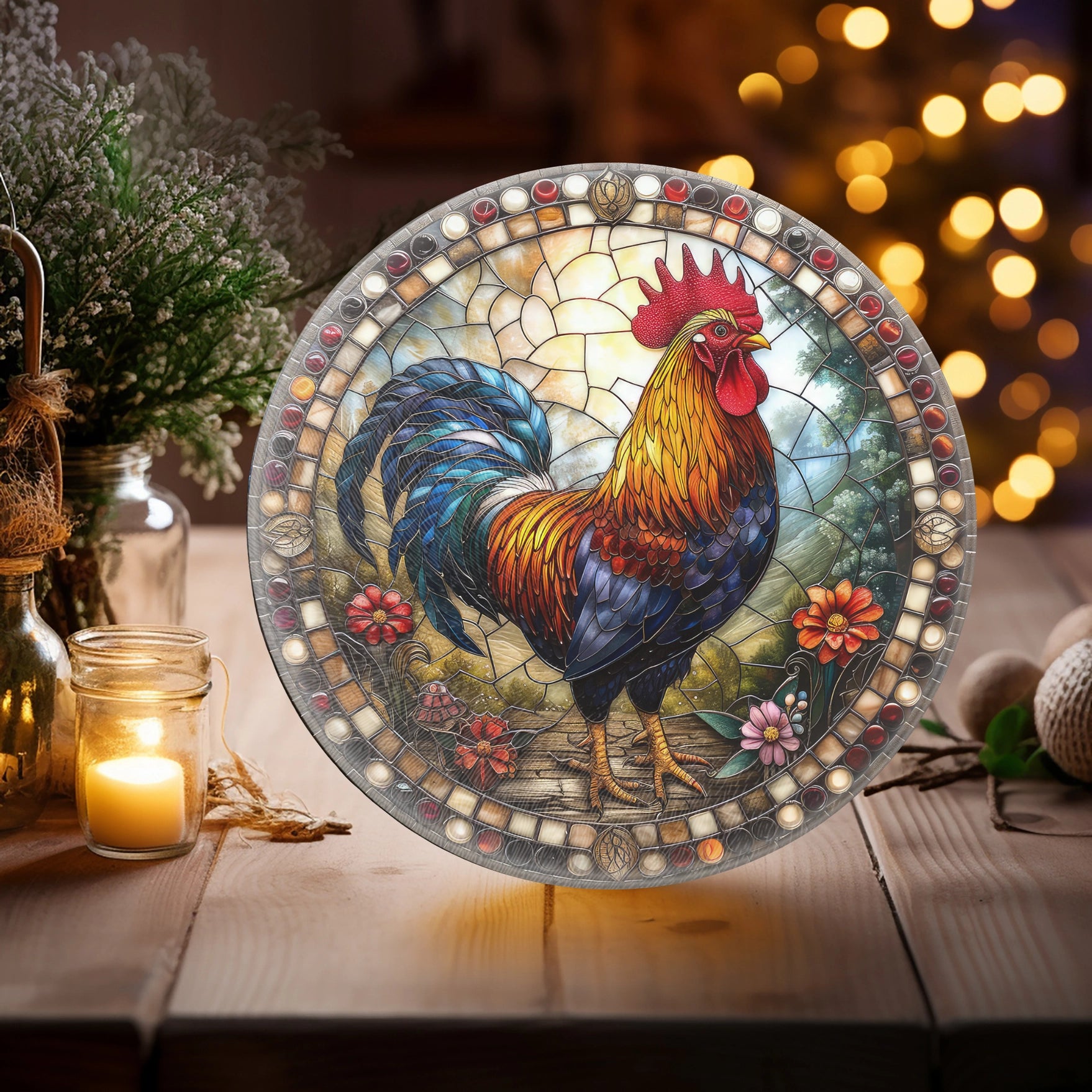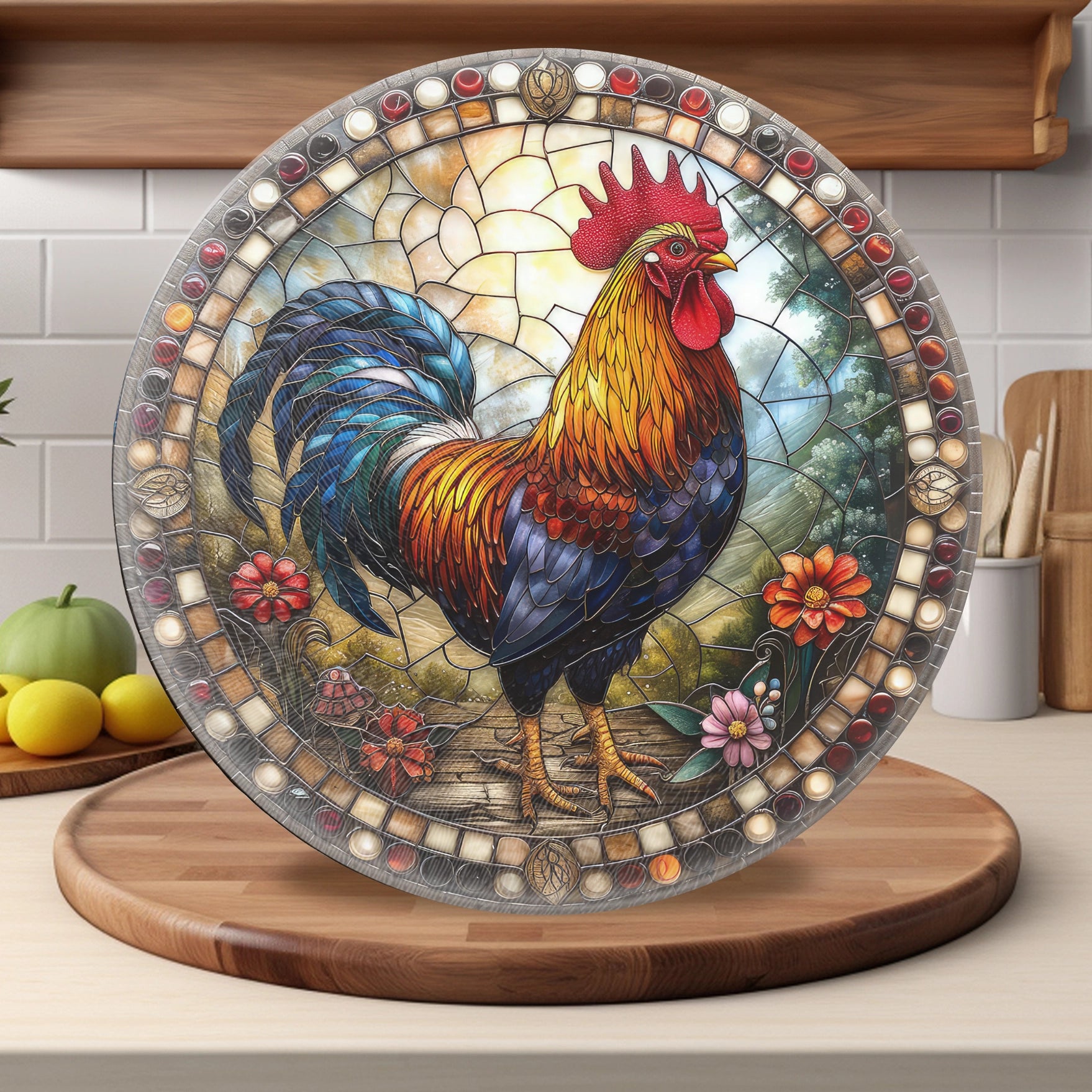 Fernville Creations, Rooster (Right Looking) Tempered Glass Cutting and Serving Board, 2 sizes