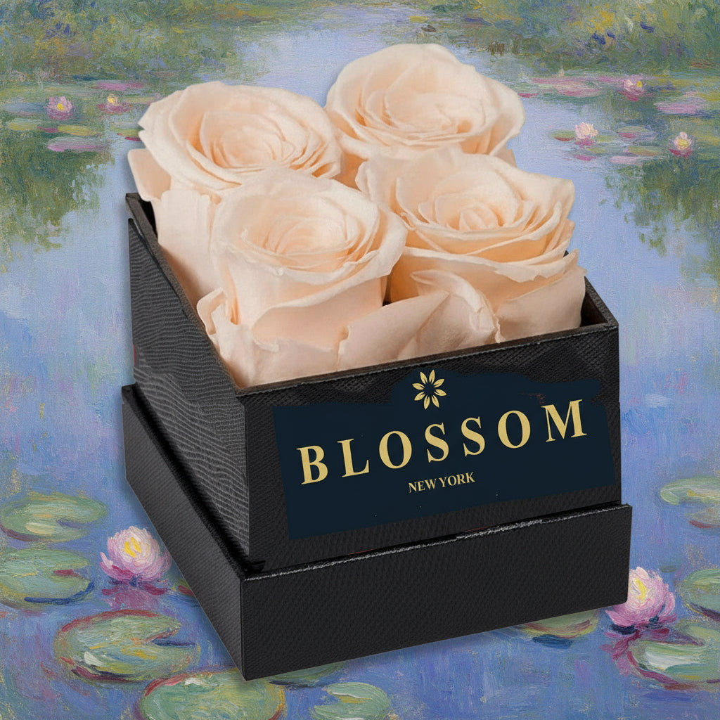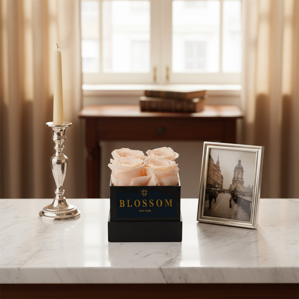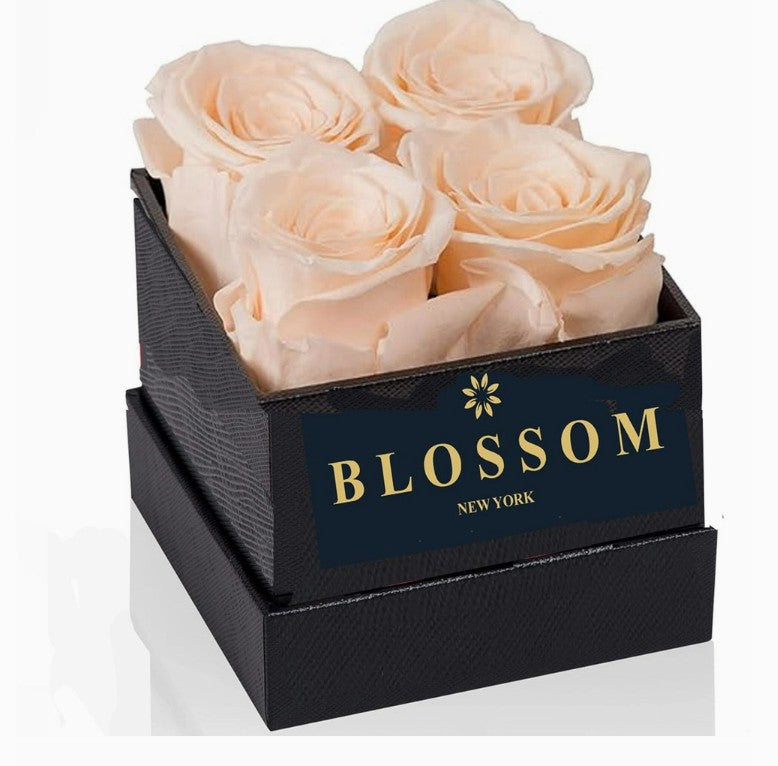 Delight in the timeless elegance of this mini gift box featuring four exquisitely crafted preserved soap roses in a soft cream / off white hue. Each rose is delicately designed to resemble fresh blooms, offering a luxurious sensory experience with gentle fragrance and silky texture. Perfect for expressing appreciation or celebrating special moments, this refined gift brings lasting beauty and charm without the need for watering or maintenance.
