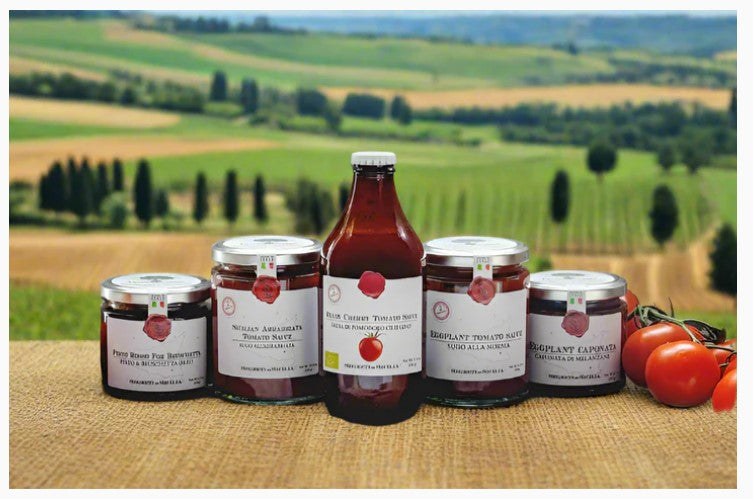 What's not to love about a classic bruschetta - juicy tomatoes, good quality extra virgin olive oil, garlic, and basil - and this one is made with organic ingredients sourced locally in Sicily.