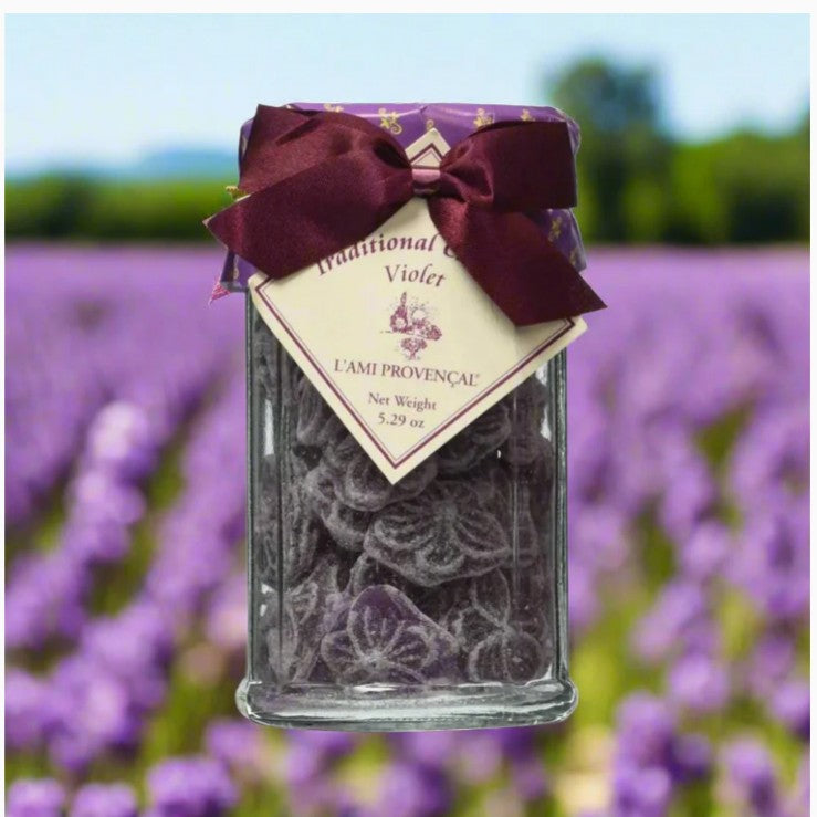 L'Ami Provençal Traditional Candies are a beautiful gift or a sweet treat for yourself. Packaged in a 12-sided glass jar with screw-on lid under the paper wrapper and ribbon. Crafted in the petite and picturesque town of Éguilles, near sunny Aix-en-Provence.