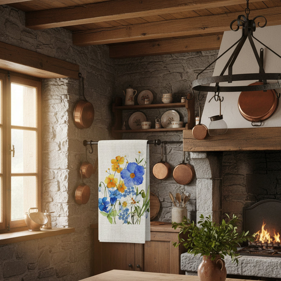 Experience the artistry of Italian craftsmanship with the "Alpi Flora" kitchen / tea towel, a luxurious linen essential from the Palermo Collection. Its captivating watercolor floral design with a mountain in the background, in conjunction with its superior quality make it the perfect choice for those who appreciate both beauty and functionality in their home.
