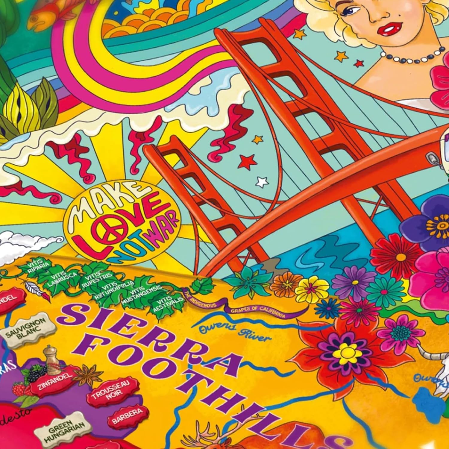 Embark on a journey through California's sun-soaked vineyards with this beautifully illustrated puzzle. Featuring the state's renowned wine regions, such as Napa Valley, Sonoma County, and Paso Robles, you'll explore the thriving Californian wine industry and its flagship grape varieties, including Cabernet Sauvignon, Zinfandel, and Chardonnay.