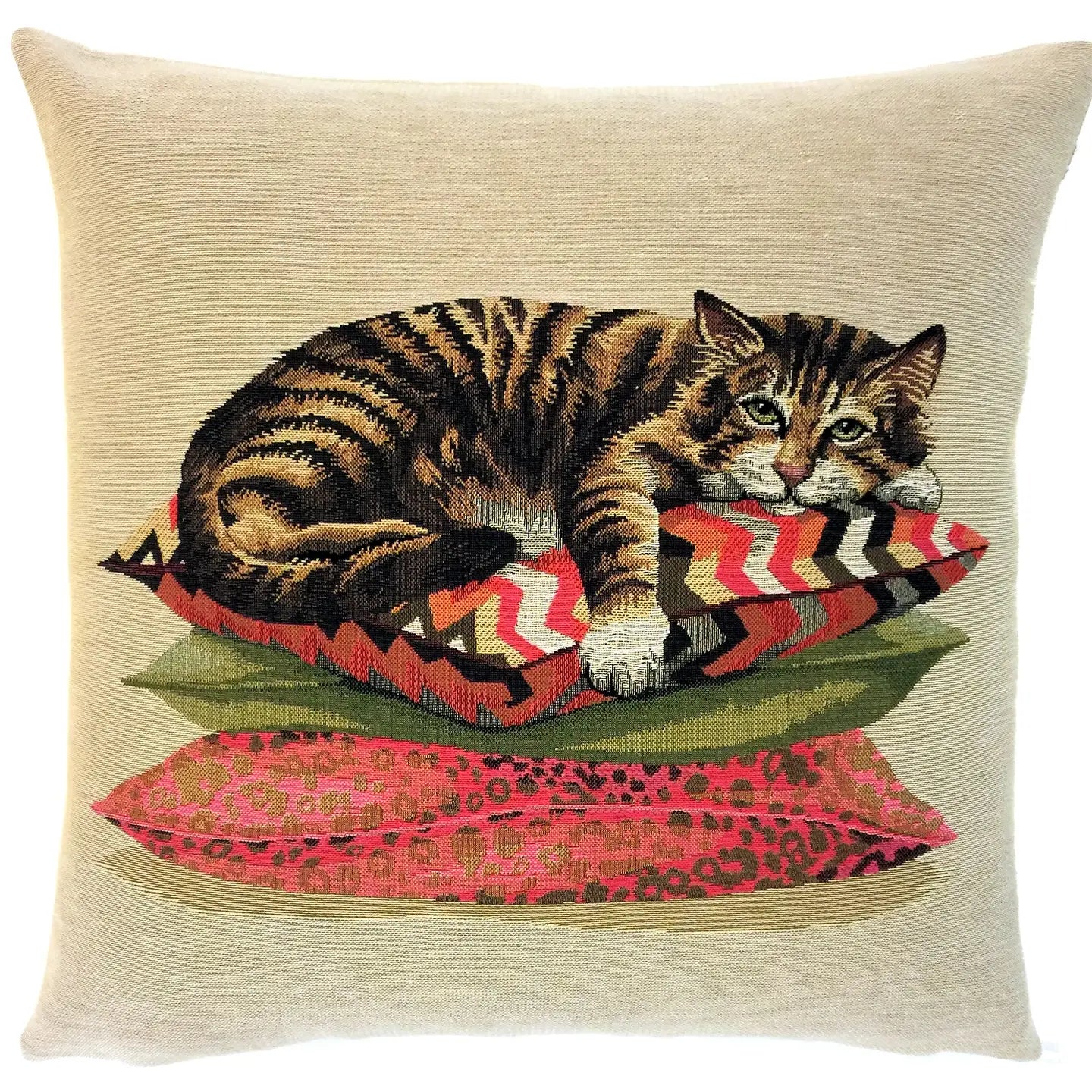 Yapatkwa Belgian Tapestry, Lazy Tiger Cat Tapestry Pillow / Cushion Cover, 18" x 18"