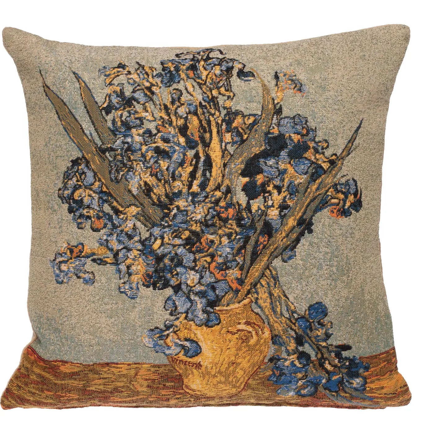 Yapatkwa Belgium, Vase with Irises - Van Gogh Decorative Tapestry Pillow / Cushion Cover, 18" x 18"