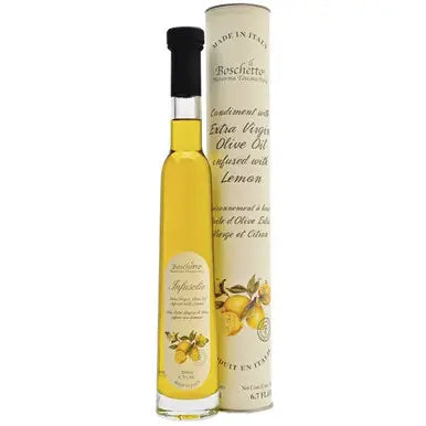 Lemon infused and full of flavor this Il Boschetto Extra virgin olive oil is truly delicious. It adds a light taste to every dish it is added to and is a great foundation to any chicken recipe.This beautifully packaged olive oil is the perfect gift for anyone who likes to cook. Best used uncooked, this citrus oil is delightful with white fish and herbs, drizzled over a fresh salad, or simply sprinkled on some crostini over warm goat cheese. Ingredients: Extra Virgin Olive Oil Lemon Infused, Natural Lemon Flavoring.