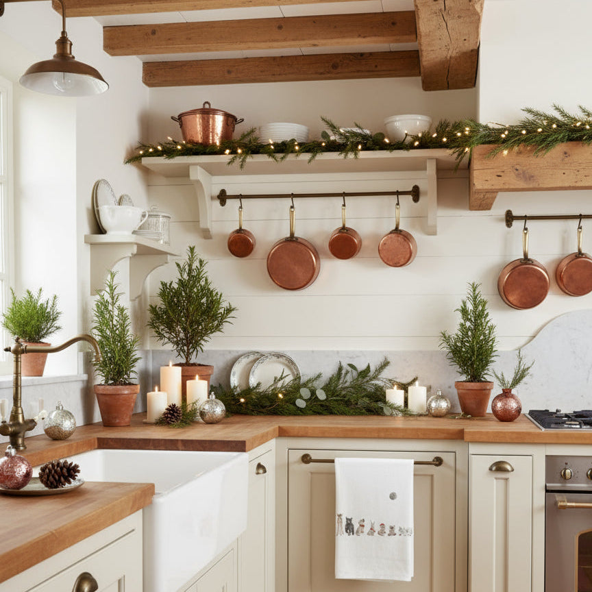 Maison Lorrain, Baby Animals at Christmas Frame, French Kitchen / Tea Towel