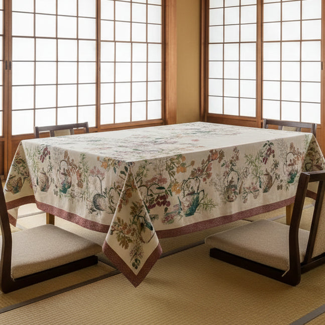 Discover the perfect blend of artistry and practicality with these Garnier-Thiebaut napkins, featuring beautifully illustrated teapots and botanical accents in warm cream and rust.
