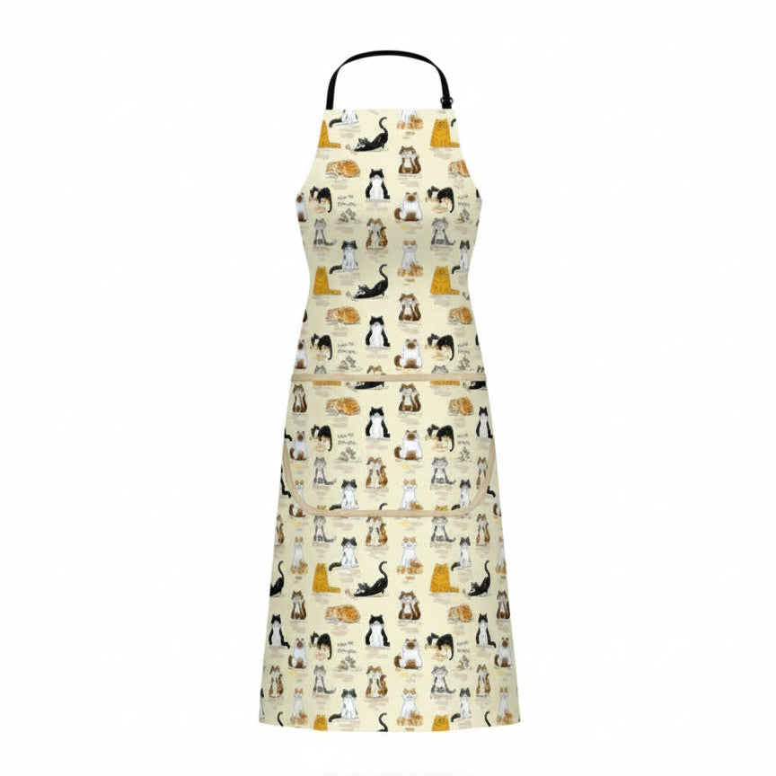 Little kitties everywhere! Your clothes will be protected with this great looking machine washable cotton double pocket adjustable apron. Beautiful colors with illustrations of cats posing in different positions.
