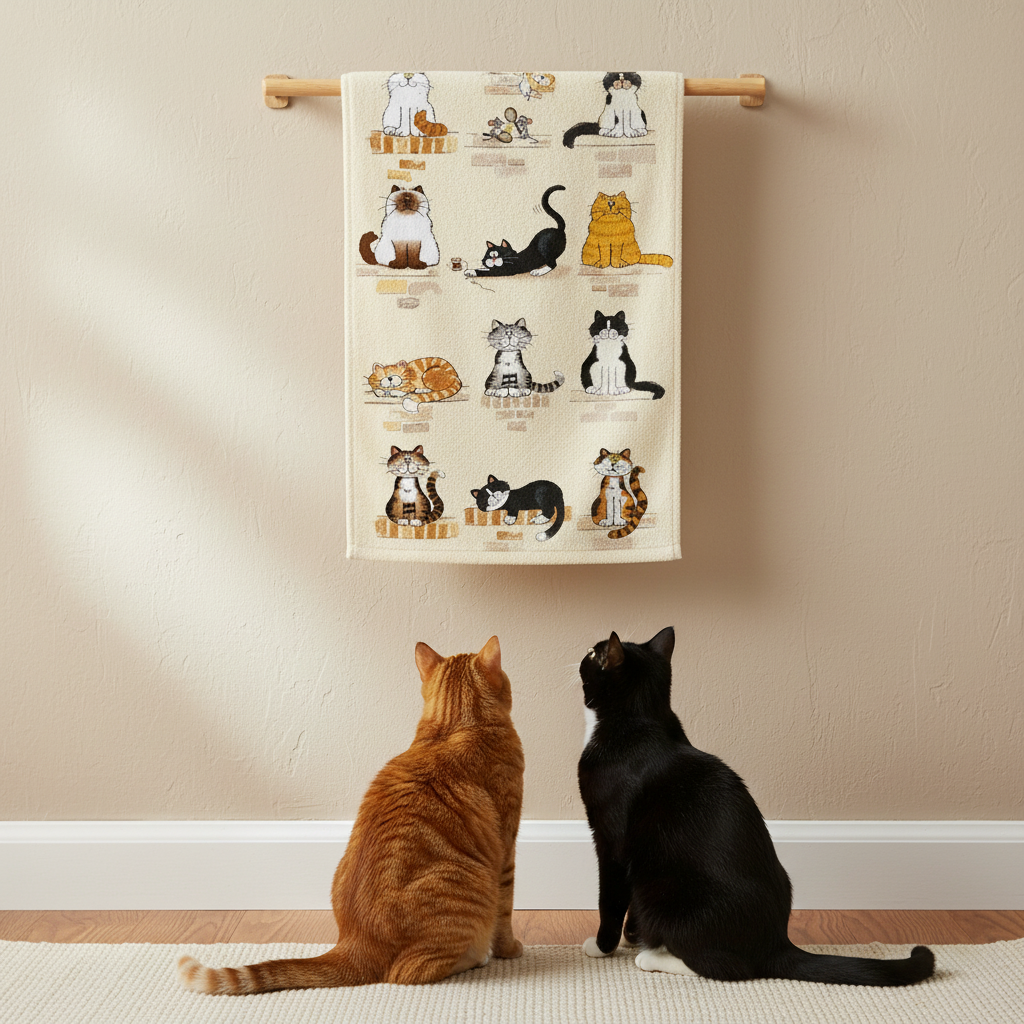 Samuel Lamont, "When the Cat's Away" Tea Towel with Borders