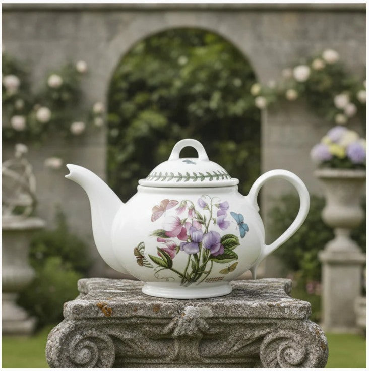 This Botanic Garden 2 pint teapot is in Portmeirion's romantic shape. Different floral images on each side of the teapot.