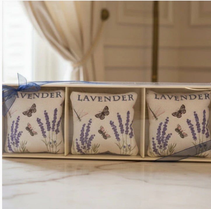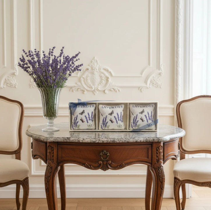 Alice's Home & Cottage, Gift Boxed Set of 3 Lavender-Scented Sachets, Lavender Sprigs
