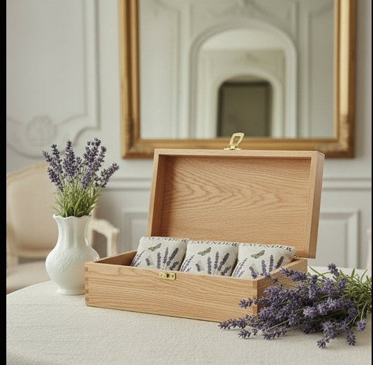 Fall in love with French Provence with this gift set of three lavender sachets filled with 100% dried French lavender flowers, each designed to freshen closets, drawers, cupboards, and travel luggage with a naturally clean, herbaceous scent.