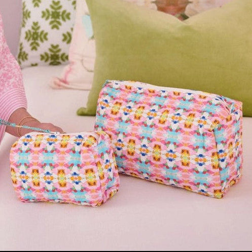 Available in large and small sizes, this Laura Park cosmetic bag is about to become your favorite travel accessory. The plastic-lined interior gives you an easy wipeable cleanup.