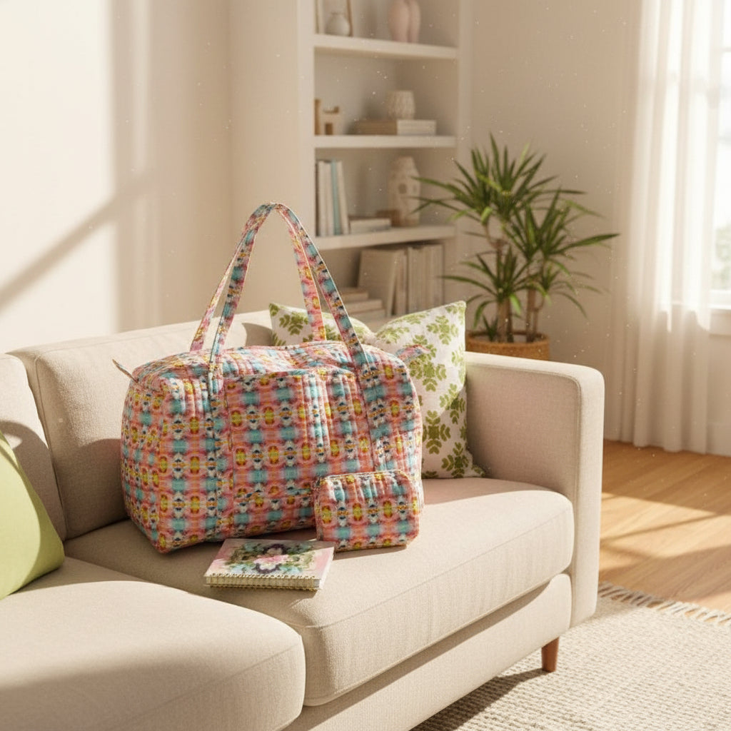 Available in large and small sizes, this smaller sized Laura Park cosmetic bag is about to become your favorite travel accessory. Lined with a plastic interior to make minor spills no big deal.