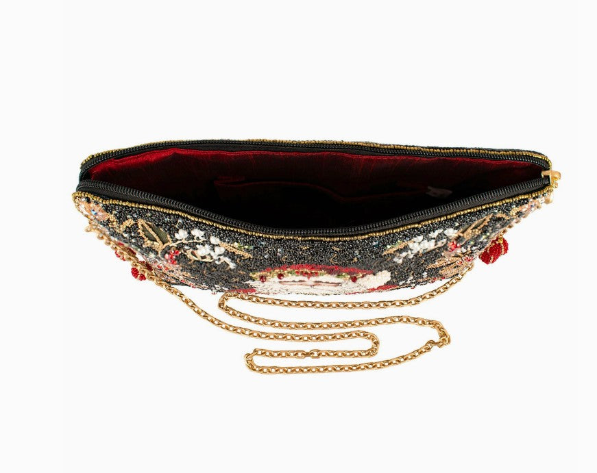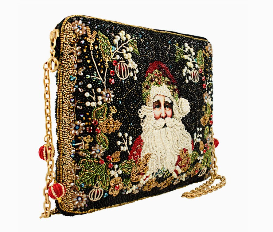 Mary Frances Accessories, "Holiday Magic Santa" Christmas Hand-Beaded Crossbody Handbag