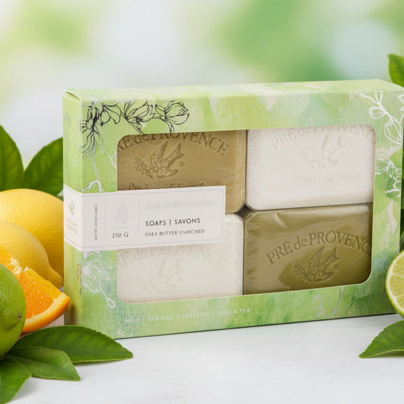 Pré de Provence, Gift Set of 4 "Fresh & Citrus" Bath Bar Soaps, 250 g each (Green Box)