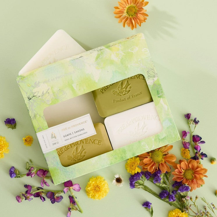 A refined selection of Pré de Provence's signature best sellers—fresh, clean, and effortlessly elegant. Each French-milled bar offers a creamy lather and enduring fragrance, capturing the essence of everyday luxury in a beautifully presented gift set.