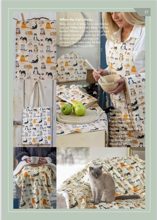 Little kitties everywhere!  Your clothes will be protected with this great looking machine washable cotton double pocket adjustable apron.  Beautiful colors with cats posing in different positions. It's sure to get many compliments!