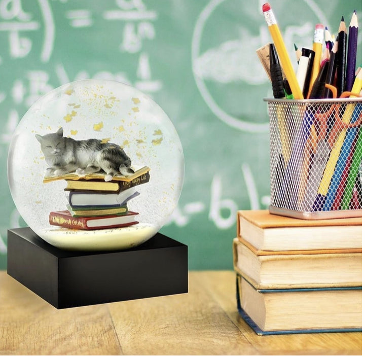 Cool Snow Globe,"Cat on Books" Snow Globe in Gift Box, 4.5"