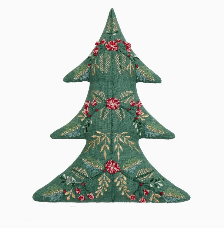 Measuring 16" x 12", this beautifully crafted "throw pillow" features intricate embroidered detailing that captures the artistry of traditional European design. The tree-shaped silhouette adds a playful yet refined touch to your holiday styling, while the quality craftsmanship ensures it becomes a cherished decoration year after year.