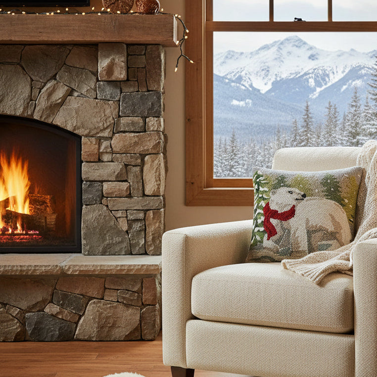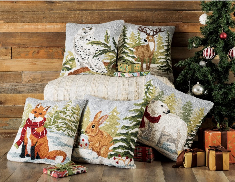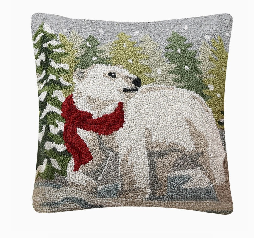 European Holiday "Polar Bear with Red Scarf" Hook Throw Pillow with Insert, 18" x 18"