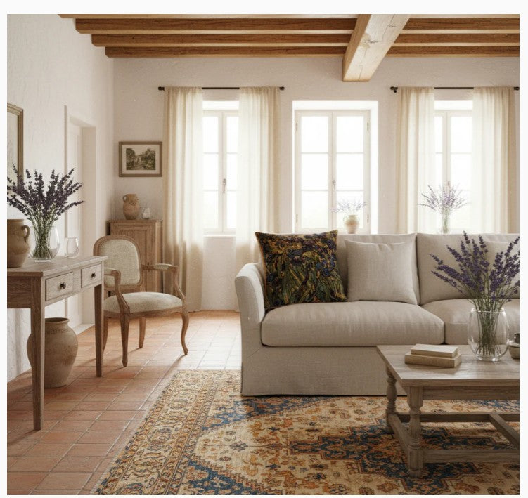 The fabric of this pillow cover is woven on jacquard looms using cutting edge weaving technology in Belgium, which has been the cradle of tapestry weaving since the 15th century.