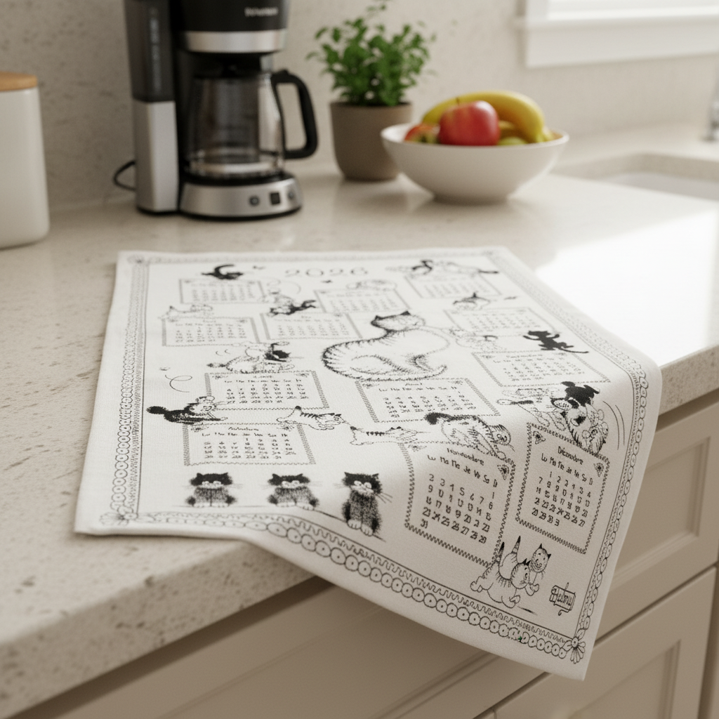 Torchons & Bouchons, 2026 "Dubout Kittens" French Calendar Kitchen / Tea Towel