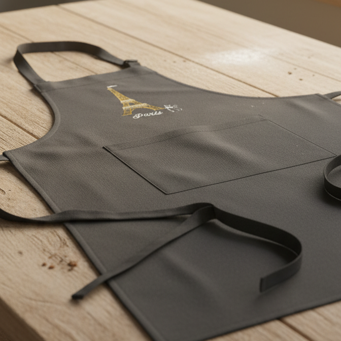 Unleash your inner chef with our Eiffel Tower recycled cooking apron. Made from 80% recycled cotton and 20% polyester, this eco-friendly apron with the iconic Eiffel Tower pattern adds a touch of Parisian charm to your kitchen outfit while the practical pocket allows you to always have your kitchen accessories close at hand.