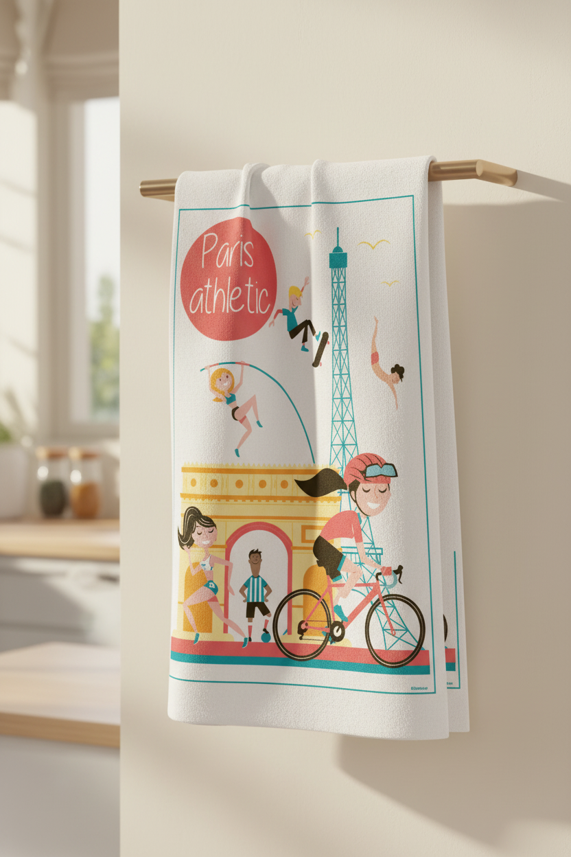 The Paris Athletic tea towel made from 100% cotton and designed to commemorate the next Olympic Games in Paris in 2024. Whether you're a passionate athlete or just want to show your support for the Games, this tea towel is a must-have addition to your home.