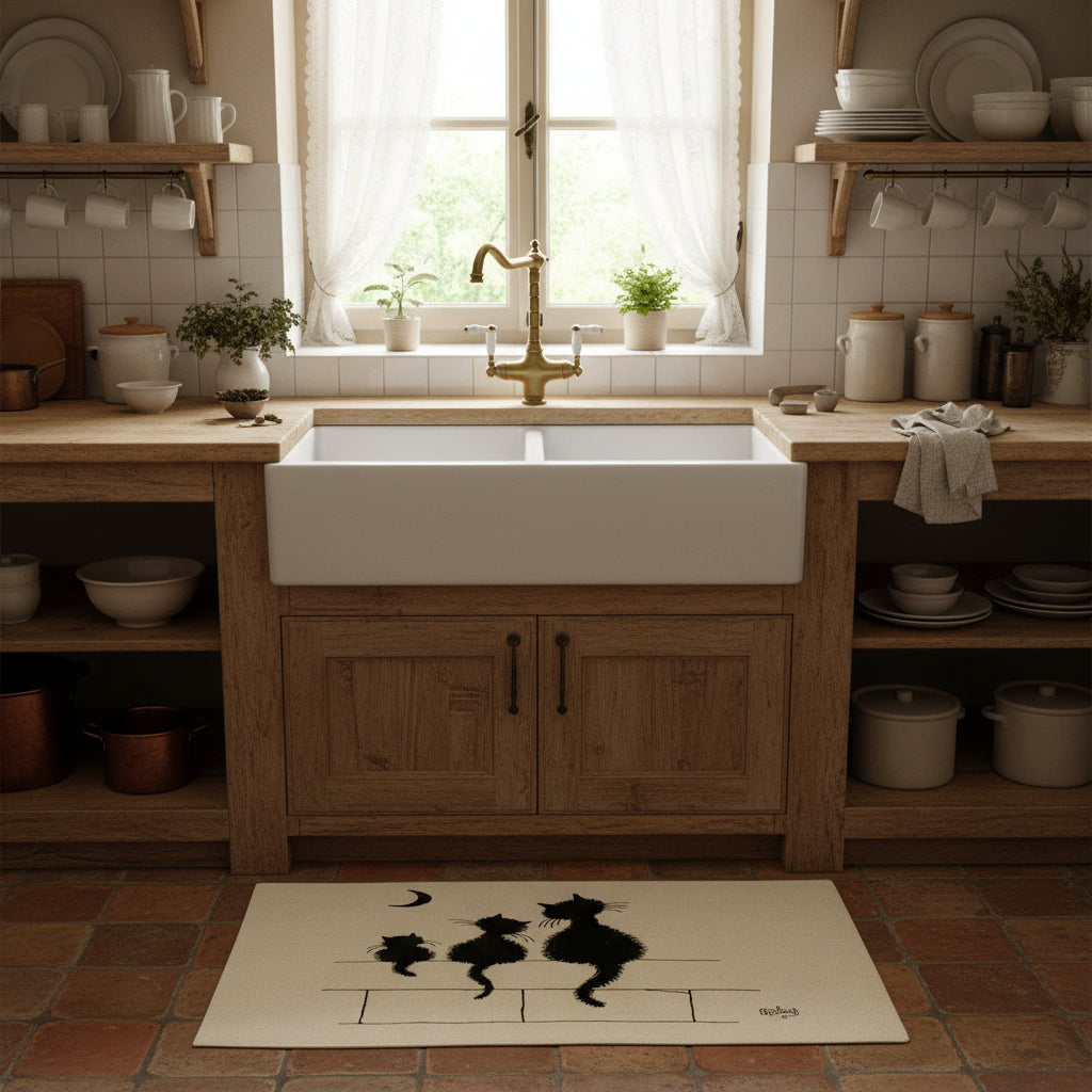 The Dubout cats kitchen mats can find its place in the kitchen. This 100% cotton rug protects the floor and decorates it with a nice cat pattern that provides a feline atmosphere full of whimsy.